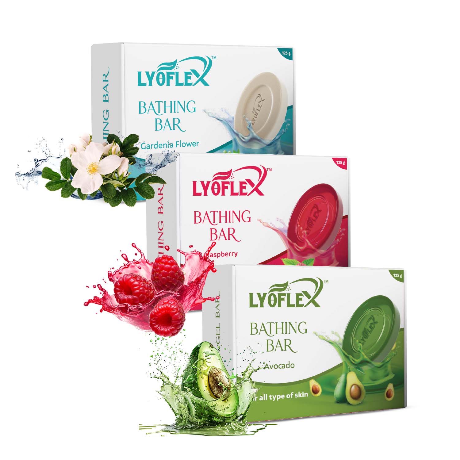 Rediscover the joy of bathing with Lyoflex Bathing Soaps, crafted to bring natureβs goodness straight to your skin. Each soap is enriched with premium botanical extracts like Raspberry, Avocado, and Gardenia, designed to gently cleanse while locking in moisture.