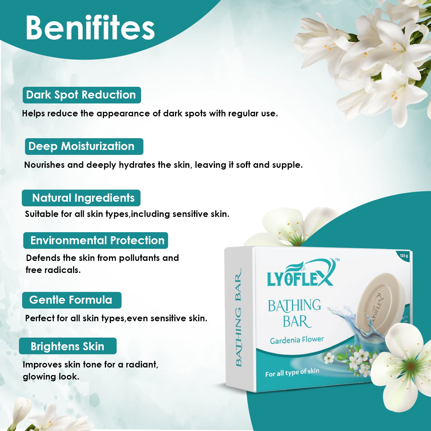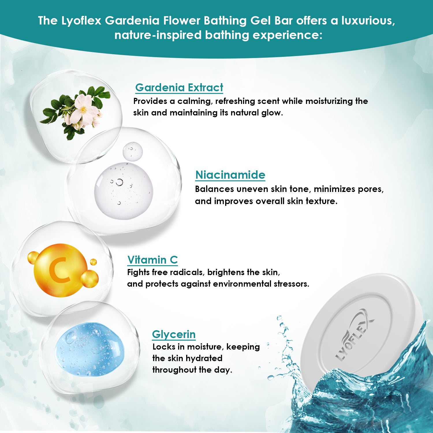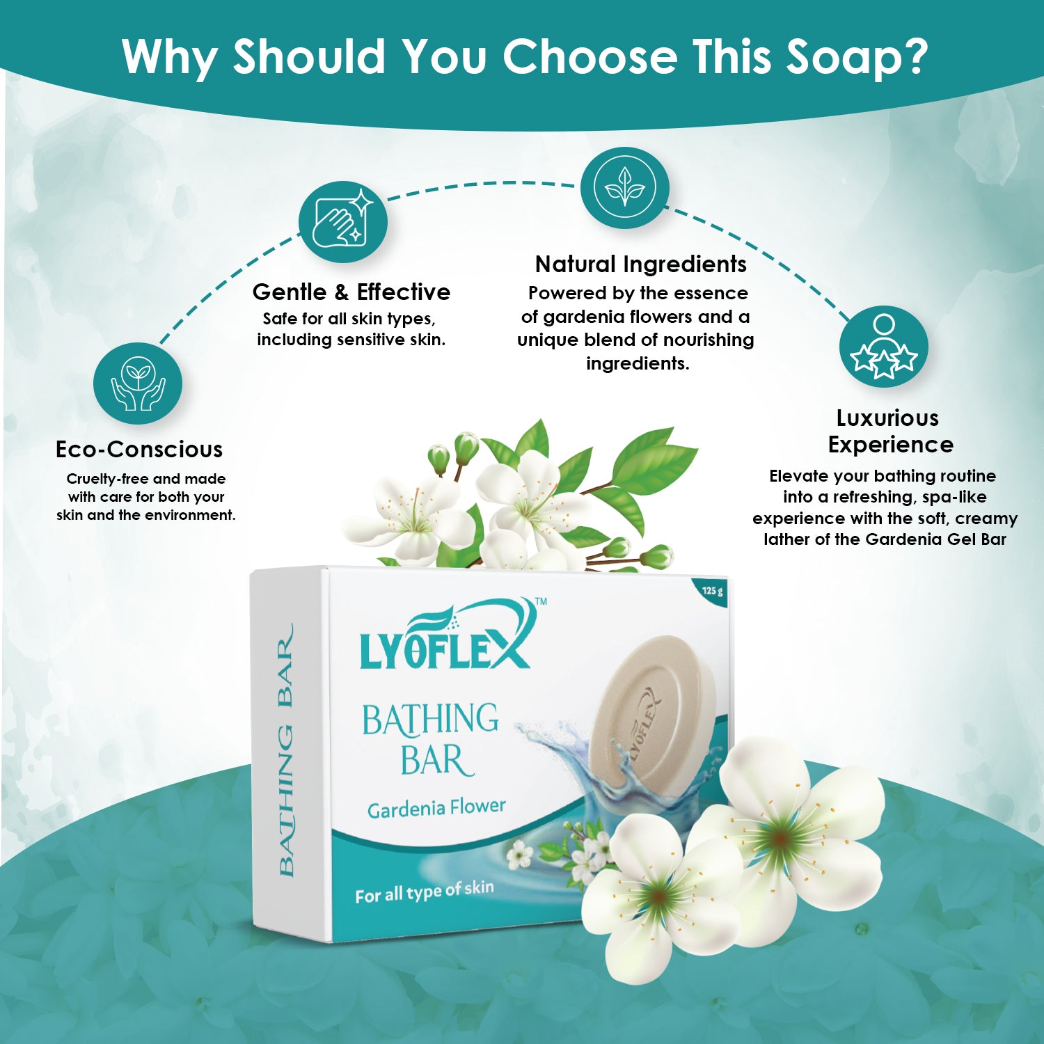 A luxurious floral bathing bar crafted with Gardenia essence for everyday freshness & radiant skin.